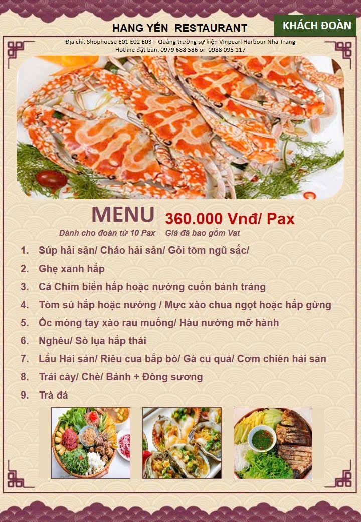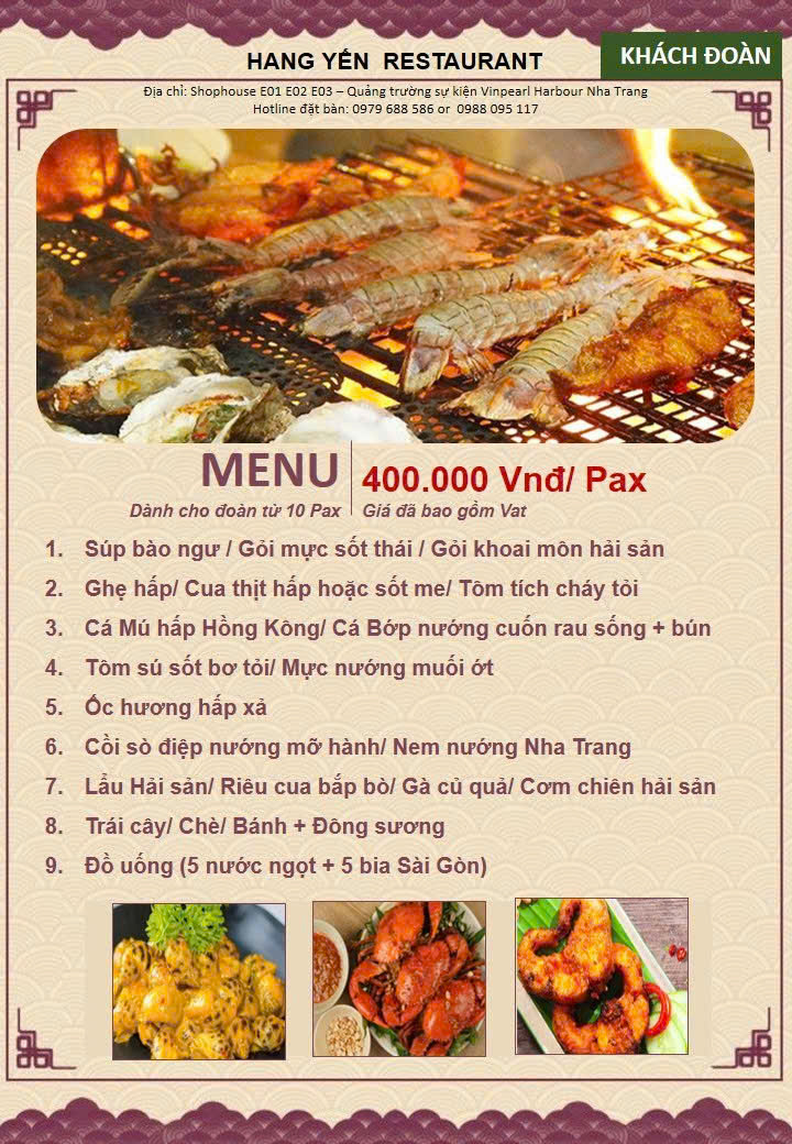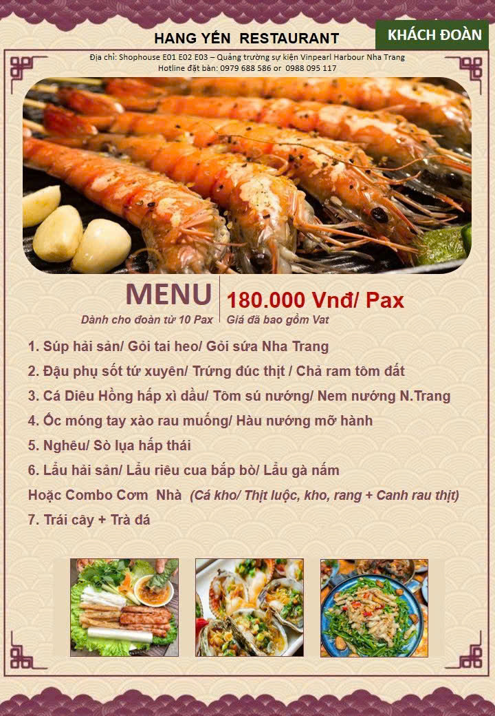 Công ty mình đã hợp tác với nhà hàng Hang Yến gần 2 năm .Đoàn có thêm yêu cầu phát sinh nhà hàng luôn nhiệt tình hỗ trợ. Chế biến theo khẩu vị vùng miền đa dạng món.