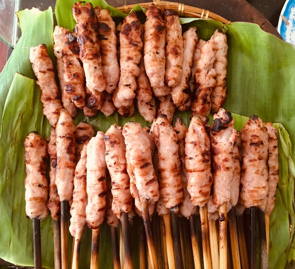 Để làm nên vị ngon tuyệt hảo của từng chiếc nem nướng, người dân địa phương phải chọn loại thịt đùi ngon với da heo. Thịt sau đó rửa sạch, xay nhuyễn rồi nêm nếm với gia vị tỏi, tiêu, mắm, đường… theo công thức riêng. Chờ cho thịt ngấm gia vị thì vo thành que dài chừng ngón tay, sau đó xiên vào que tre để nướng trên bếp than hồng. Khi nem nướng chín vàng, hương thơm lan tỏa khắp nơi cũng là lúc bạn có thể thưởng thức.